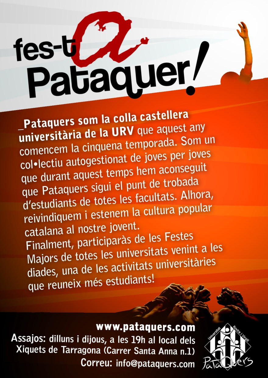 Fulletó i enganxina per la colla castellera universitària Pataquers de la URV.