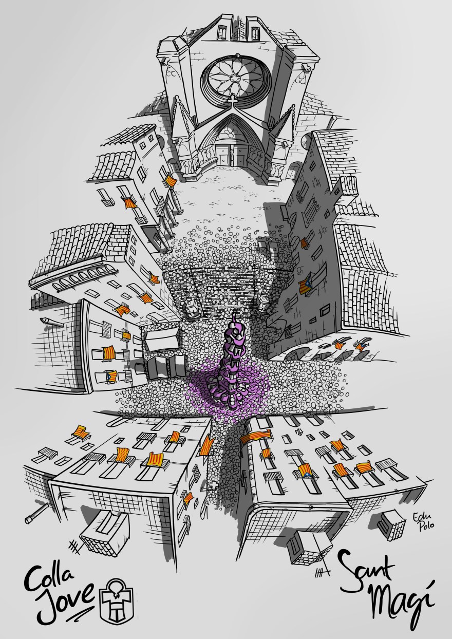 Cartell promocional de la diada de Sant Magí per la Colla Jove dels Xiquets de Tarragona.