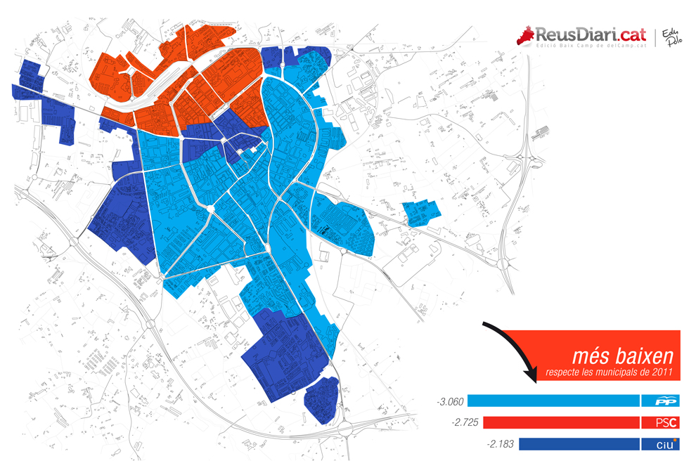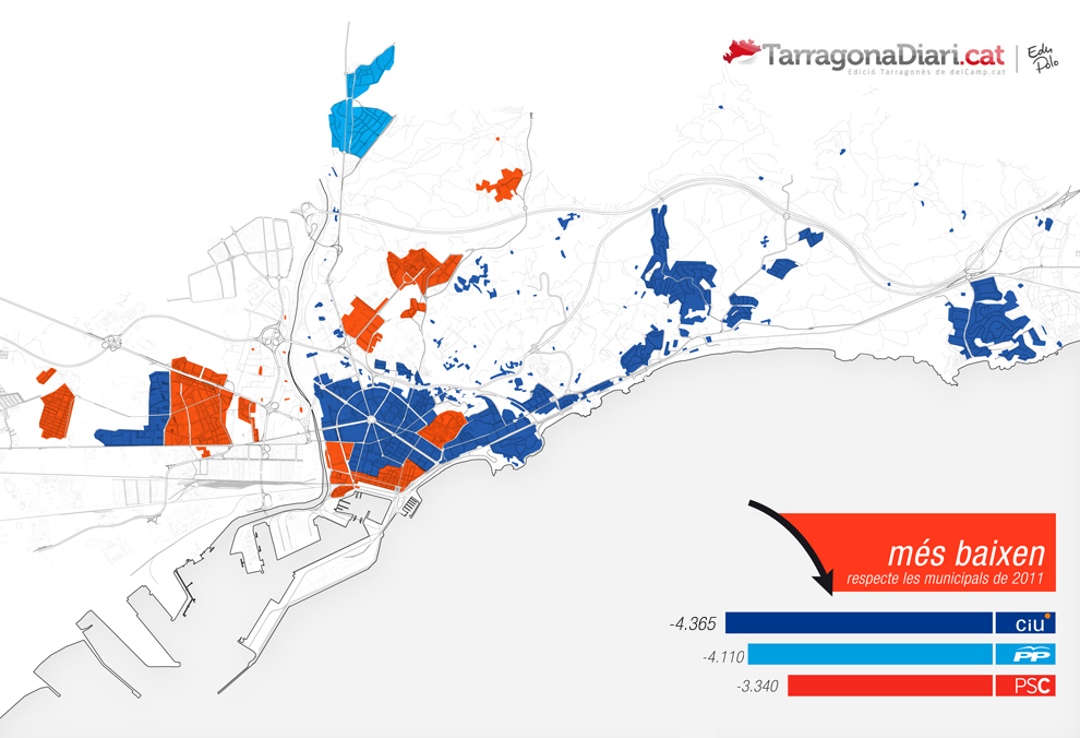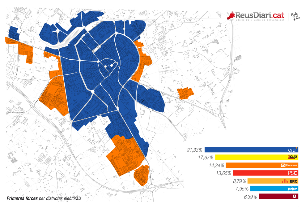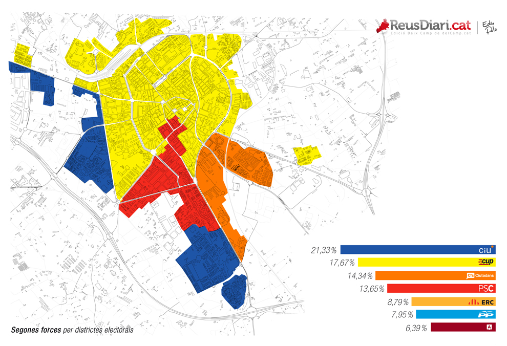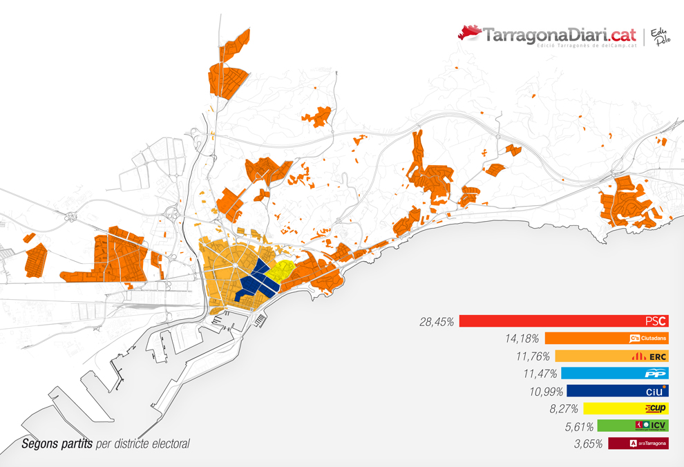 Mapes infogràfics publicats pel diari digital delCamp.cat i les seves versions d’àmbit local TarragonaDiari.cat i ReusDiari.cat de les eleccions municipals del 24 de maig de Tarragona, Reus i del Camp de Tarragona.